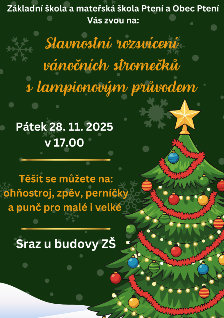 Základní škola a mateřská škola Ptení ve spolupráci s obcí Ptení Vás srdečně zve na slavnostní rozsvícení vánočních stromečků, které se uskuteční: