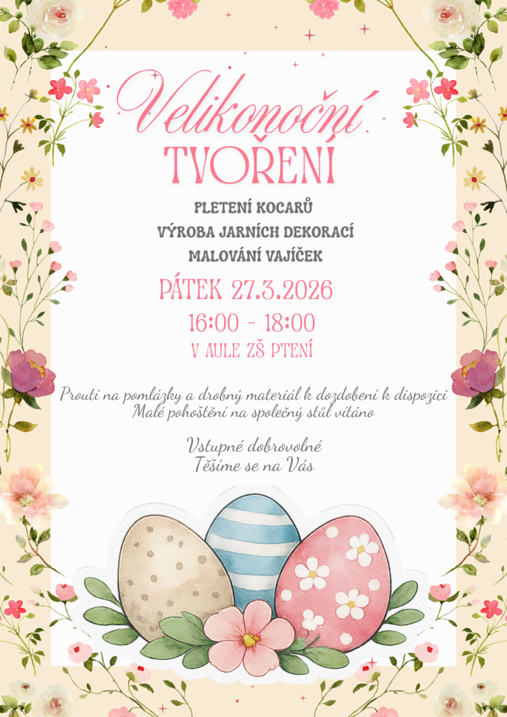 Akce se uskuteční v pátek 27. března 2026 od 16:00 do 18:00 v aule ZŠ Ptení.
